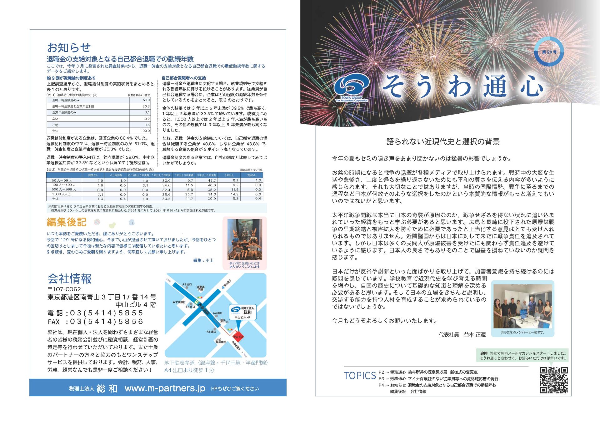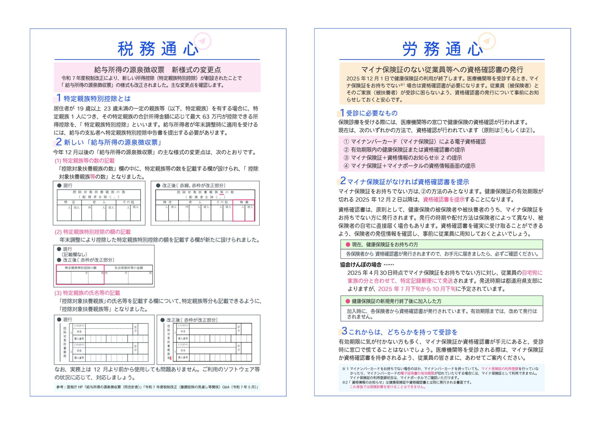 画像をクリックすると拡大します。 関連Webコンテンツ一覧・他にも以下がよく読まれています マイナンバーの取扱いを再確認! そうわ通心 4月号 そうわ通心 11月号 そうわ通心 12月号 そうわ通心 11月号 そうわ通心 10月号 そうわ通心 10月号 そうわ通心 9月号 そうわ通心 1月号 そうわ通心 3月号 そうわ通心 120号 そうわ通心 121号